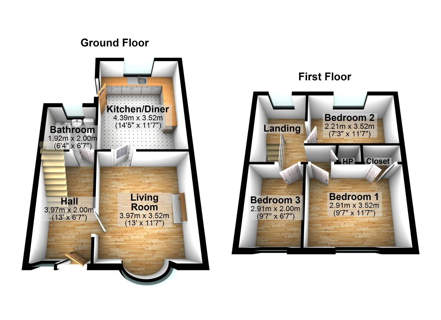 Internally, the property boasts a living room with open fire, which leads directly into an open plan kitchen-diner. There is a range of eye and low-level units, with accommodation for a large dining table. The bathroom comprises of a bath with over-head shower, toilet and wash hand basin and on the first floor, there are 3 well-proportioned bedrooms