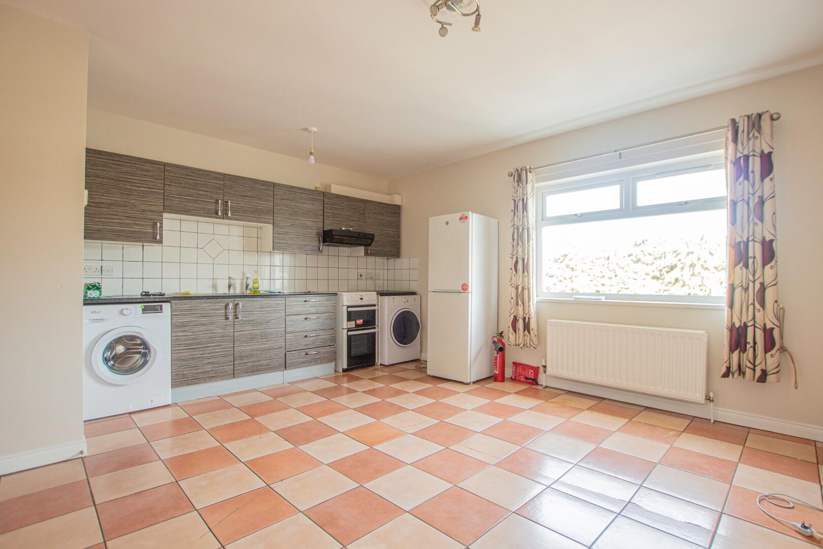 This apartment has oil-fired central heating and double-glazed windows.