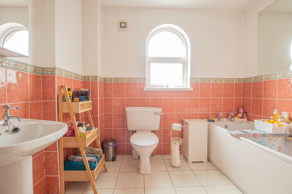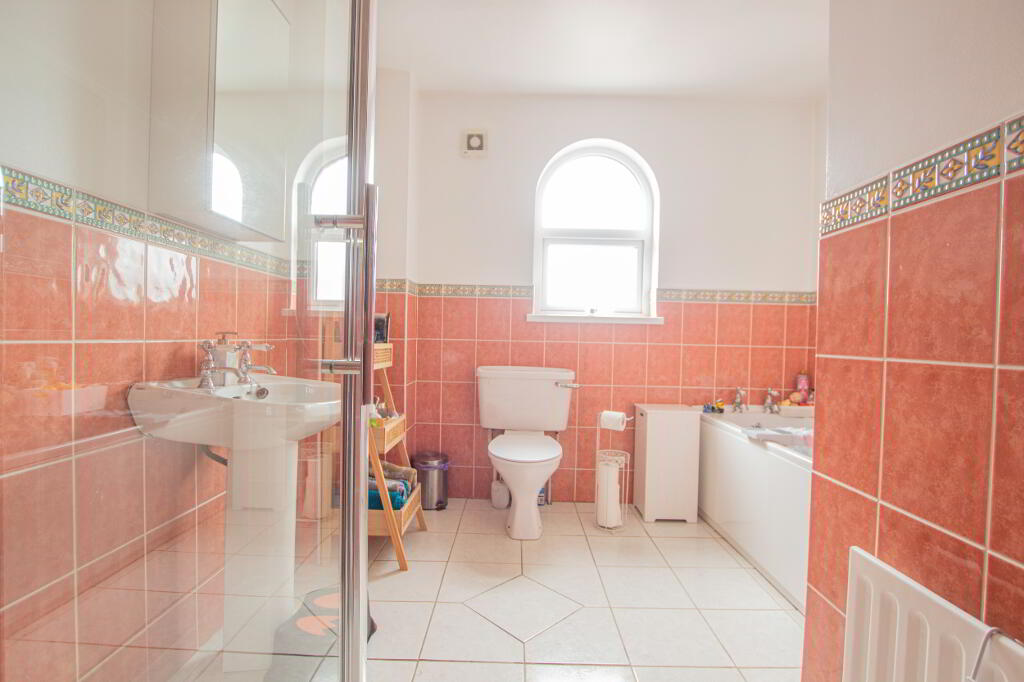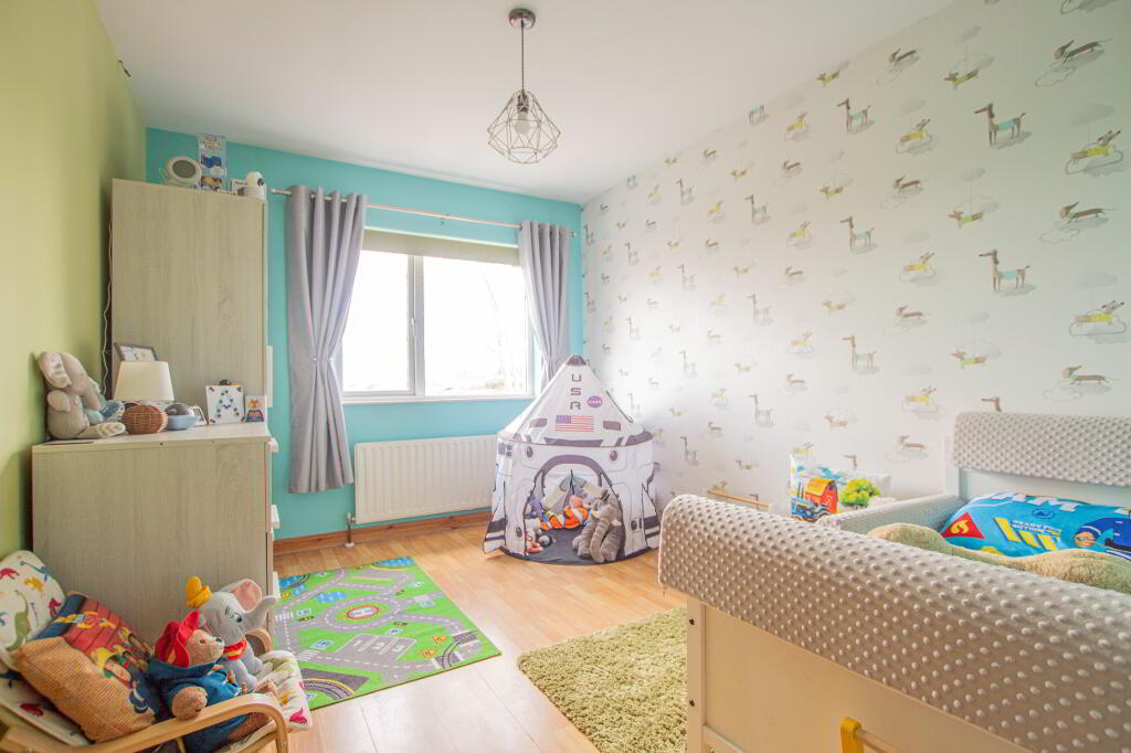 On the first floor, there are 3 well-proportioned bedrooms with one bedroom boasting a large built-in storage cupboard. The family bathroom comprises of a bath, shower, wash hand basin and toilet and there is also an extensive hot-press.