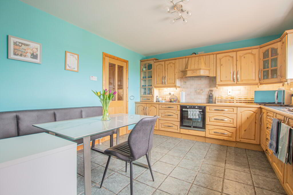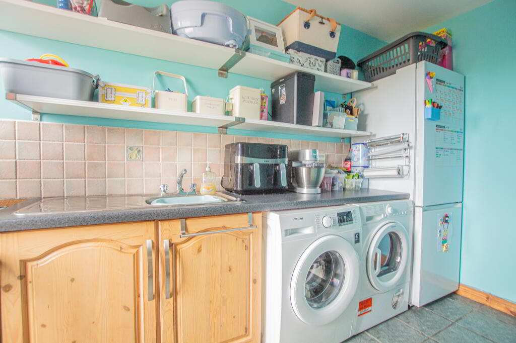 Internally, the property comprises of a spacious entrance hall with a w/c located under the stairs. There is a family sized lounge with a feature multi-fuel stove and an open plan kitchen and dining area with a range of eye and low-level units and appliances. There is also a utility room which has accommodation for appliances and additional storage.